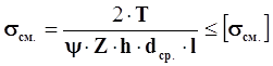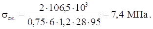 где Z=6 – число зубьев; d=26,мм – внутренний диаметр вала; D=30,мм – наружный диаметр вала; b=6,мм – ширина зуба. Расчет шлицевого соединения по напряжению смятия [18]: