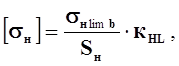 где σн lim b- предел контактной выносливости поверхности зубьев, МПа σн lim b=2.НВ+70, (4.10) σн lim b=2.340+70=750; Sн- коэффициент безопасности, принимаем Sн=1,15 [11]; KHL- коэффициент долговечности, принимаем KHL=1,1 [11].