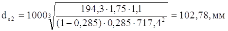 где кнβ- коэффициент неравномерности распределения нагрузки по ширине венца, принимаем кнβ=1,1 (из табл. 1.5 [11]); кве- коэффициент ширины зубчатого венца по внешнему конусному расстоянию, принимаем кве=0,285 [11].