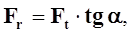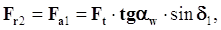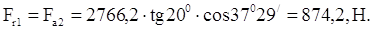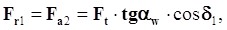 где Fr1- радиальная сила на шестерне, Н; Fa2- осевая сила на колесе, Н; αw- угол зацепления, αw=200.