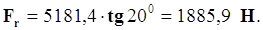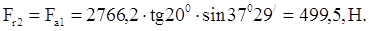 где Fr2- радиальная сила на колесе, Н; Fa1- осевая сила на шестерне, Н; αw- угол зацепления, αw=200.