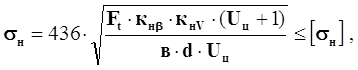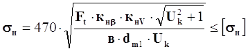где σн- расчетное контактное напряжение; [σн]- допускаемое контактное напряжение, см. п. 4.4.2; кнv- коэффициент, учитывающий динамическую нагрузку, принимаем кнv=1.1 (табл. 1.10 [11]).