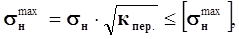 в.) допускаемое максимальное контактное напряжение при перегрузке зубьев: