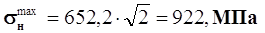 где кпер.- коэффициент перегрузки, кпер.=2; [σнmax]- допускаемое максимальное контактное напряжение при перегрузке зубьев, [σнmax]=1960, МПа.