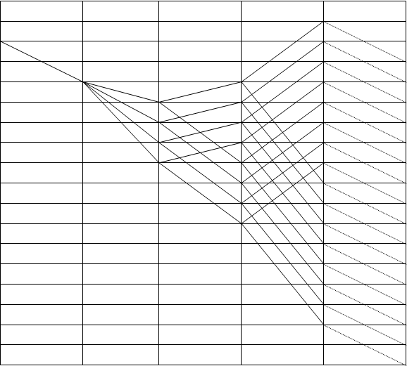 4. На основе имеющихся величин Zn и j выбираем оптимальный структурный вариант привода Zn = p1(x1) x p2(x2) x ... x pn(xn) где p1,pn - количество различных передач в каждой группе x1,xn - характеристика группы передач 18 = 3(1) x 3(3) x 2(9) Значения x1, x2, xn для j = 1.26 должны удовлетворять условию для понижающих передач x1 = 6 для понижающих передач x2 = 3 5. По выбранному оптимальному структурному варианту привода строим структурную сетку. 6. Задаемся частотой вращения электродвигателя nдв = 1460 об/мин и строим структурный график чисел оборотов привода главного движения.