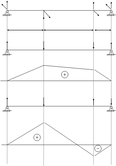 My Mk = 578 * 103 H*мм Pi = 2Mk / dшi Ti = Pi * tg 20° d6 = 60 мм d13 = 120 мм P6 = 2*578*103 / 60 = 19266.7 H T6 = tg20° * 19266.7 = 7012 H P13 = 2*578*103 / 120 = 9634 H T13 = tg20° * 9634 = 3506 H 6. Определим реакции опор: P6 * AC + P13 * AD - Rbx * AB = 0 Rbx = 19354 H Rax = P6 + P13 - Rbx = 9546.6 H T6 * AC - T13 * AD + Rbx * AB = 0 Rby = 540 H Ray = T6 - T13 + Rby = 9978 H 7. Произведем предварительную оценку вала и уточненный расчет на прочность. sпр = Ö Mu2 + 0.75Mk2 / W £ [s]u = 80 МПа. где sпр - приведенное напряжение Mu - max изгибающий момент в описанном сечении Н*м W - момент сопротивления изгибу в описанном сечении, мм3 Mu = Ö Mx2 + My2 ,н*м где Mx и My - максимальные моменты в опасном сечении, н*м Mu = Ö 19002 + 5462 = 1976 H*м W = 0.1 * d3 , мм2 где d - диаметр вала, мм W = 0.1 * 503 = 12500 мм3