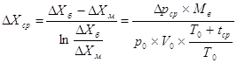 где Х – влагосодержание на входе или на выходе из сушилки. Тогда на входе в сушилку p1 = (0,028/18∙105) / (1/29 + 0,028/18) = 4321 Па на выходе из сушилки р2 =(0,11/18∙105) / (1/29 + 0,11/18) = 15054 Па Δpср = ((18498–4321) − (17109 − 15054)) / ln(16,7) = 6276 Па Откуда ΔХср по уравнению 18 будет равно: ΔХср = 6276∙18 /