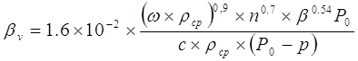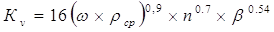 где ρср – средняя плотность сушильного агента, кг/м3 ρср = М∙Т0 / (V0(T0 + tср)) = 29∙273 / (22,4∙(273 + 190)) = 0,763 кг/м3 с – средняя теплоемкость сушильного агента, с = 1 кДж/(кг∙К) β – степень заполнения барабана высушиваемым материалом, % р – среднее парциальное давление водяных паров в сушильном барабане, Па p = (p1 + p2)/2 = (4321 + 15054)/2 = 9687,5(Па) ω – рабочая скорость сушильного агента в барабане, м/с n – число оборотов барабана ( изменяется в реальных барабанах от 2 до 12 об/мин) Уравнение 20 справедливо для значений: ωρср = 0,6 … 1,8 кг/м2∙с n = 1,5 … 5 об/мин β = 10 … 25 % Если указанные пределы не соблюдаются, то объем барабана можно рассчитывать по величине объемного напряжения по влаге: