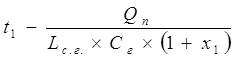 Kv = 16(2,3 Δtср – средняя разность температур, 0С Св – теплоемкость вздуха Θ1 – температура влажного материала Θ1 = Т0 Для вычисления Δtср необходимо найти температуру сушильного агента tх до которой он охлаждается, отдавая тепло на нагрев высушиваемого материала до tм1 .Эту температуру можно определить из уравнения теплового баланса: Qn = Lс.г.∙(1+X1 )∙Cг∙(t1 – tх ) (24) Откуда: tx =