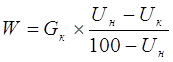 I1 = [53671,98∙0,95 + 1,34∙20 + 8,47∙17,25∙49] / 144,878 = 401,541 (кДж/кг) Поскольку коэффициент избытка воздуха α велик (α > 1), физические свойства газовой смеси, используемой в качестве сушильного агента, практически не отличаются от физических свойств воздуха. Это дает возможность использовать в расчетах диаграмму состояния влажного воздуха. Глава 2. Определение параметров отработанных газов, расхода сушильного агента и расхода тепла на сушку Из уравнения материального баланса сушилки определим расход влаги W, удаляемой из высушенного материала.