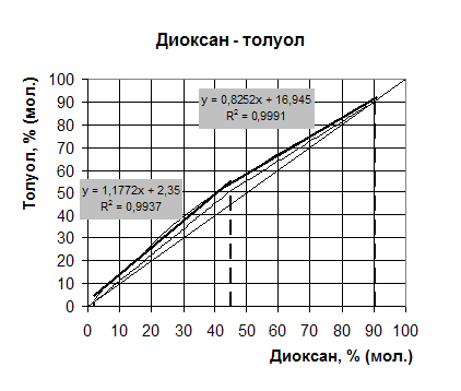 Рис. 3.3. Касательные к линии равновесия Тогда для верхней и нижней частей колонны m соответственно равно 0,83 и 1,18. Следовательно: