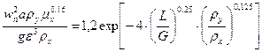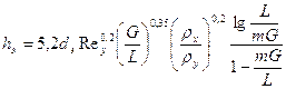 где λ—коэффициент сопротивления сухой насадки, зависящий от режима движения газа в насадке. Критерий Рейнольдса для газа в верхней и нижней частях колонны соответственно равен: