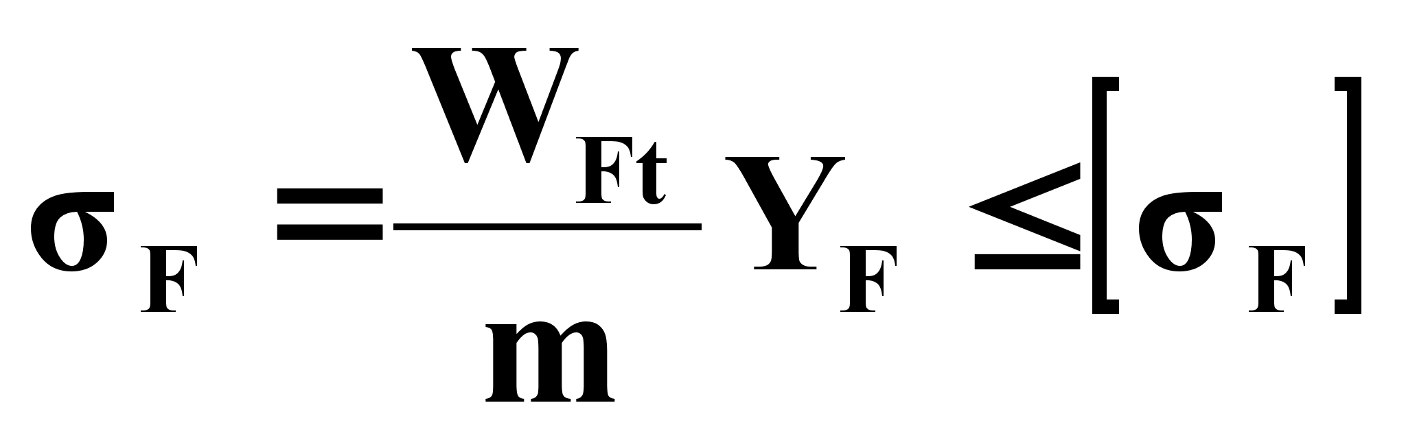 Sn - запас прочности; kFC = 0.8 - коэффициент, учитывающий влияние реверсивности передачи; m - модуль зубчатого колеса; YF - коэффициент, учитывающий влияние формы зуба; WFt