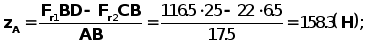 5.3.2. Расчёт вертикальных составляющих сил реакций т.А и т.В. Уравнение моментов для т.В: