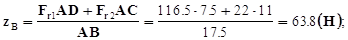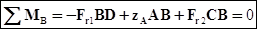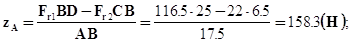 5.3.2. Расчёт вертикальных составляющих сил реакций т.А и т.В. Уравнение моментов для т.В: