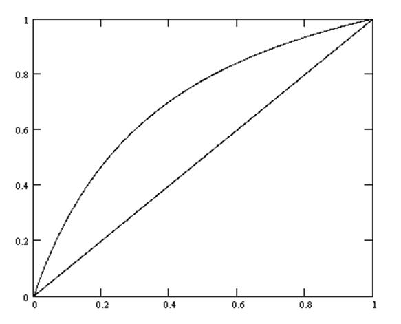 Рис.1 Кривая равновесия Состав пара уходящего с питательной тарелки равен yf=0,501 мол.дол. Рассчитываем минимальное флегмовое число: