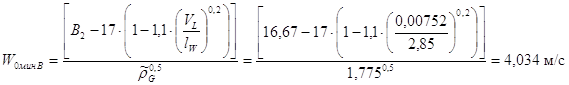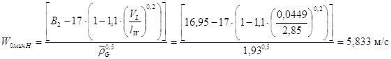 Минимально допустимая скорость пара в свободном сечении тарелок:
