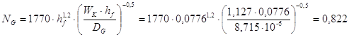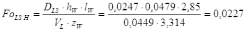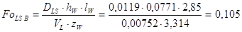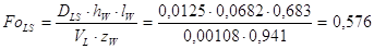 Действительная скорость жидкости меньше допустимых. Таким образом для 2-й секции принимаем данную тарелку. Больше всего подходит стандартная тарелка ТСК-Р, которая имеет следующие характеристики: Диаметр тарелки: D = 1000 мм; Периметр слива: lw = 0,683м; Высота сливного порога: Свободное сечение тарелки: Сечение перелива: Относительная площадь для прохода паров: Межтарельчатое расстояние: Количество колпачков: Работа тарелки характеризуется следующими параметрами: Высота парожидкостного слоя: Фактор аэрации: Гидравлическое сопротивление тарелки: Межтарельчатый унос: Скорость жидкости в переливном устройстве: Скорость пара в колонне: Расчёт эффективности тарелок и высоты 2-й секции.1. Определяем значение критерия Фурье для колпачковой тарелки: