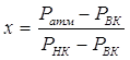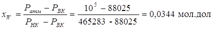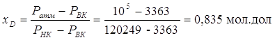 где Pатм- атмосферное давление, PНК и PВК –давление насыщенных паров индивидуальных компонентов при температуре фракции, определяются по уравнению Антуана: