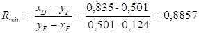 Определение рабочего флегмового числа и числа теоретических тарелок для 2-й секции.