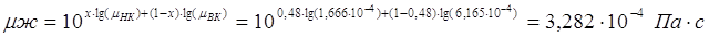 Средние вязкости жидкости: Вязкость НК компонента при температур tН=388
