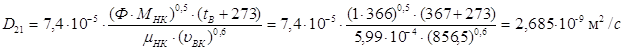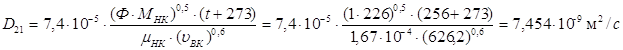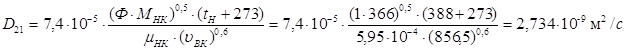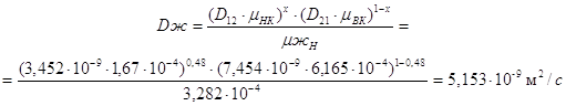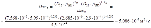 Средние коэффициенты диффузии жидкости и пара: Для низа колонны:
