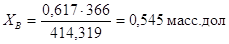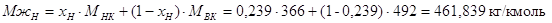 Расчёт второй секции колонны производим только для верхней части. Заменяем перегоняемую смесь углеводородов во 2-й секции на бинарную смесь. В качестве низкокипящеко (НК) компонента принимаем н-гексадекан (С16Н34 ), а в качестве выкокипящего (ВК) - : н-гексакозан (С26Н54 ). Производим расчёт мольных концентрация на входе и на выходах из секции. Мольную концентрацию на входе определяем на основе массовой концентрации, которую рассчитали в материальном балансе 2-й секции (табл. 3).