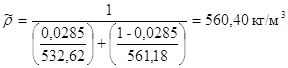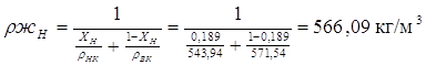 Средние плотности жидкости: Плотность НК компонента при температур tН=388