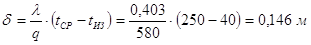Приближённо принимаем, что всё термическое сопротивление сосредоточено в слое изоляции, тогда толщина слоя изоляционного материала определяется уравнением: