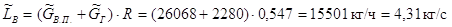 Избыток тепла во второй секции снимаем за счёт подачи охлаждённой флегмы до 40 оС, а так же за счёт ВЦО: Расход ВЦО найдём по уравнению: