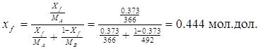 Температура на выходе из дистиллата равна: tD=235 оС Температура на входе равна: tF=308 оС