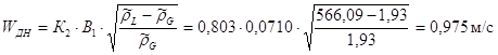 Допустимая скорость пара в рабочем сечении колонны для нижней части: