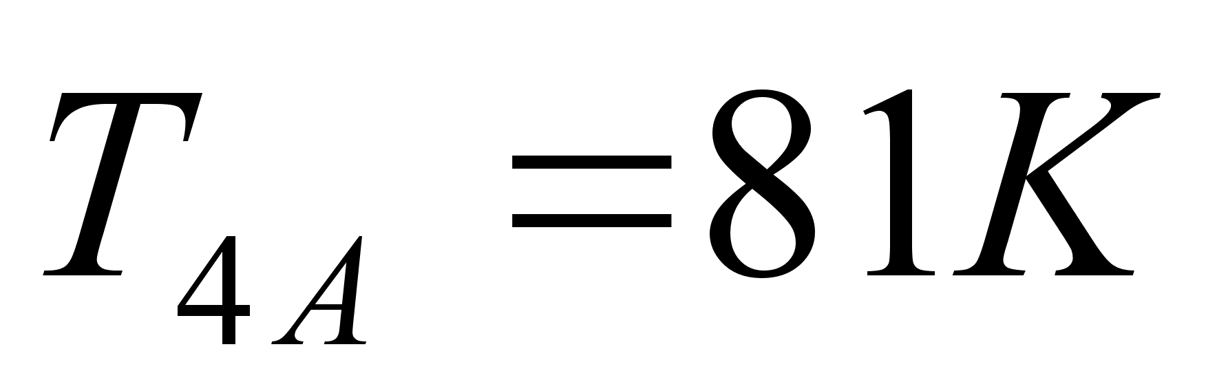 Истинное значение Vдет вычислим из баланса установки: Vдет = [VMq3 + KMkΔi2K – 3K + VMΔi4B – 3B – VMΔi1B – 2B]/Mhадηад = [1*29*8 + 0,187*32*(352,8 – 349,9) + 1*29*(522,32 – 516,8) – 1*29*(563,82 – 553,75)]/29*(394,5 – 367,5)*0,7 = 0,2 Vдет = 0,2V = 0,2*1711 = 342 м3/ч Составляем балансы этих теплообменников: I VCpVΔT4B – 6B = KCpKΔT3K’ – 4K + ACpAΔT2A’ – 3A II (V – Vд )CpVΔT6B-5B = KCpKΔT3K – 3K’ + ACpAΔT2A’ – 2A Добавим к ним баланс теплообменника – ожижителя. Получим систему из 3 уравнений. III КСр кΔТ4К – 5К + АСрАΔТ3А – 4А = VCpvΔT2В – 3В Вычтем уравнение II из уравнения I: VCpVΔT4B – 6B - (V – Vд )CpVΔT6B-5B = KCpKΔT3K’ – 4K - KCpKΔT3K – 3K’ + ACpAΔT2A’ – 3A - ACpAΔT2A’ – 2A Получаем систему из двух уравнений: I VCpV (T4B - 2T6B + T5B ) + VдCpV(T6B – T5B) = KCpK(T4K – T3K) + ACpAΔT3A – 2A II КСр кΔТ4К – 5К + АСрАΔТ3А – 4А = VCpvΔT2В – 3В I 1*1,012(280 – 2*173 + 138) + 0,387*1,093(173 – 138) = 0,128*1,831(T4K – 88) +0,872*1,048(T3А–85) II 1*1,012*(310 – 275) = 0,128*1,093(295 - T4K) + 0,872*1,041(295 – T3А) T4K = 248,4 К T3А = 197,7 К Для удобства расчёта полученные данные по давлениям, температурам и энтальпиям в узловых точках сведём в таблицу: