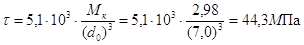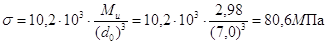 Болт удовлетворяет требованию. 5.3.4. Толщина соединительных фланцев должна быть не менее: Принимаем Отстояние центров болтов от кромки фланцев принимаем равное толщине фланца. 5.4. Штырь руля. 5.4.1. Диаметр штыря должна быть не менее: Принимаем 5.4.2. Длина цилиндрической части должна быть: 5.4.3. Длина конической части должна быть: Принимаем Конусность по диаметру должна быть не более Принимаем диаметр у вершины конусной части 5.4.4. Нарезная часть: диаметр должен быть не менее: Принимаем 5.4.5. Гайка. Наружный диаметр должен быть не менее: Высота гайки не менее: 5.4.6. Длина нарезной части. Длина нарезной части уточняется в процессе изготовления или по чертежу. 5.4.7. Проверка штыря по удельным давлениям.