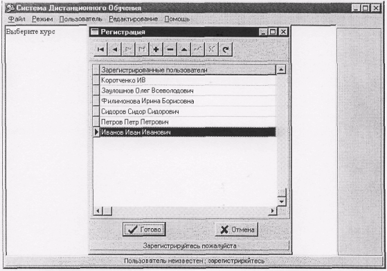 обеспечивать формированием модели обучаемого для тех, кто регистрируется впервые или вызовом модели зарегистрированного пользователя. Проверяется посредством регистрации нового пользователя.
