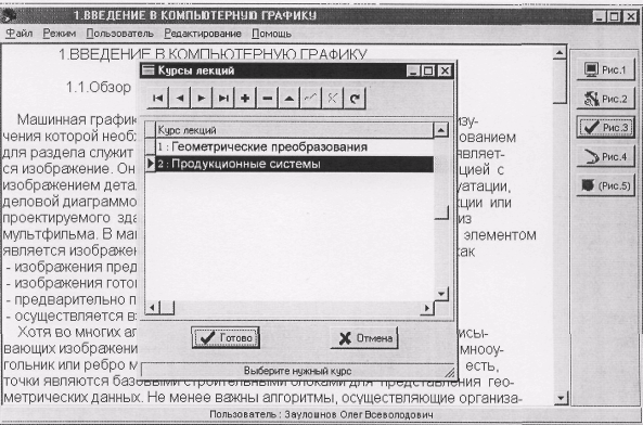 Реферат: Разработка образовательной среды для дистанционного обучения по дисциплинам Компьютерная графика и Системы искусственного интеллекта. Геометрические преобразованияРеферат: Разработка образовательной среды для дистанционного обучения по дисциплинам Компьютерная графика и Системы искусственного интеллекта. Геометрические преобразования1. ВВЕДЕНИЕ Область применения созданного программного продукта - дистанционное образование по специальности 220400 "Программное обеспечение вычислительной техники и автоматизированных систем" для дисциплин, связанных с компьютерной графикой и искусственным интеллектом. Возможно использование для других специальностей и других форм обучения, а также всеми желающими более детально изучить отдельные вопросы машинной графики, представления и использования знаний. Область создания образовательных программ освоена достаточно широко, разработана масса обучающих программ, в частности, проект "Создание единой образовательной системы дистанционного образования (СДО) для технических университетов России. " Однако ранее разработанные СДО обладают целым рядом недостатков: - жесткая привязанность к предметной области;