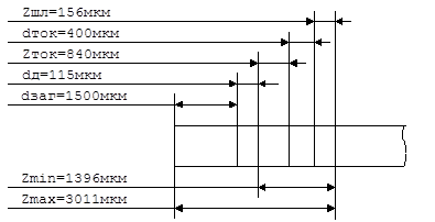 Рис 7.1. Схема расположения припусков. Величины припусков Zшл и Zток рассчитываются, остальные выбираются.