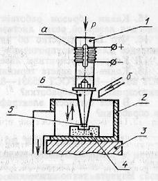 Рис.17.1. Схема ультразвуковой обработки: 1-магнитострикционный преобразователь; 2-ванна; 3-стол ультразвукового станка; 4-обрабатываемая заготовка; 5- инструмент; 6-концентратор; а-подвод тока от генератора; б-подвод абразивной суспензии; Р-сила прижима инструмента к детали 18. Промышленный робот для обслуживания токарного станка с ЧПУ Промышленный робот (ПР) — автоматическая машина, представляющая собой совокупность манипулятора и перепрограммируемого устройства управления, для управления в производственном процессе двигательных и управляющих функций, заменяющих аналогичные функции человека при перемещении предметов производства и (или) технологической оснастки. Для обслуживания одного станка возможно применить специализированного робота как, например, СМ40Ц.40.11 технические характеристики которого приведены ниже: Грузоподъемность суммарная, кг...............................................40 Число рук/захватов......................................................................1/1 Число степеней подвижности.......................................................4 Тип привода.........................................................Гидравлический Система управления........................................................Цикловая Число программируемых координат...........................................3 Способ программирования перемещений...................по упорам Погрешность позиционирования, мм.....................................±1.5 Наибольший вылет руки, мм...................................................1672 Линейные перемещения, мм: — горизонтальные....................................................................760 — вертикальные........................................................................760 Скорость линейных перемещений, м/с: — горизонтальных...............................Вперед-0.41; Назад-0.635 — вертикальных.......................................Вверх-0.212; вниз-0.38 Угловые перемещения, градусы........................................270,180 Масса, кг....................................................................................1400 Робот работает в цилиндрической системе координат и предназначен, в основном, для обслуживания одного станка; он имеет две системы управления - цикловую и ЧПУ - позиционную. В функции робота при обслуживании токарного станка с ЧПУ будет входить установка и съем детали, управление приспособлением закрепления детали, также необходима синхронизация работы робота и обслуживаемого станка с помощью согласованного интерфейса между ними, т.к. для обеспечения полной автоматизации необходимо управление включением/выключением станка роботом. Вид и тип захватного устройства робота будут зависеть от формы обрабатываемой детали. Для деталей типа хвостовика возможно применение захвата типа С01, диапазон захвата которого 20¸150 мм. Также необходимо применение тактового стола. Тактовый стол — предназначен для хранения запаса заготовок и подачи их в зону захвата ПР. Заготовку можно устанавливать непосредственно на пластину стола, если форма и размеры заготовки позволяют это сделать, либо на специальные приспособления - спутники, которые крепят к пластинам. Готовую деталь можно ставить на тактовый стол или в специальную тару. Тактовый стол выбирают исходя из габаритов и массы заготовок. ЗАКЛЮЧЕНИЕ В ходе курсового проектирования была разработана и проанализирована технология изготовления хвостовика на станках с ЧПУ с применением средств автоматизации начиная с выбора заготовки и заканчивая термообработкой и упаковкой детали. Также была обоснована экономическая целесообразность внедрения разработанной технолог