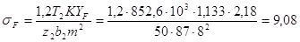 Коэффициент формы зуба YF=2,18 Напряжение изгиба