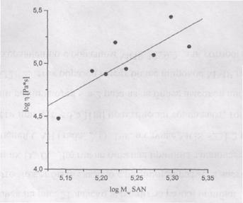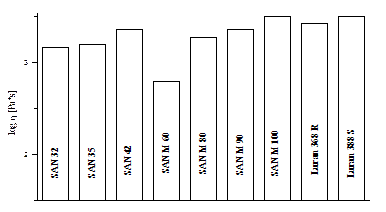 Рис. 9. Вязкость линейных САН при 240°С при скорости сдвига lgγ=1.0 [с-1]