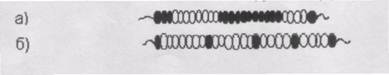 может представлять собой гомополимер или сополимер с боковыми группами любого типа. Молекула блок-сополимера содержит относительно длинные участки одного химического состава, разделёнными полимерными участками другого химического состава (а) или низкомолекулярными