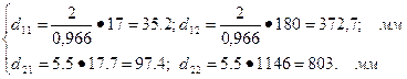 1.10 Визначення основних розмірів зубчастих шестірьон і коліс редуктора. З початку тут треба визначити діаметри ділильних кіл за формулами: