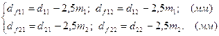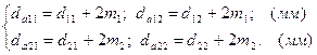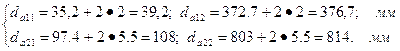 Потім розраховують діаметри виступів та западин зубчастого вінця. Діаметри виступів визначають за формулами: