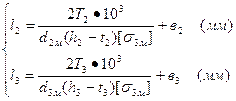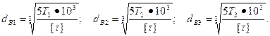 де Т1, Т2, Т3 - знайдені вище обертові моменти на валах (кНмм),