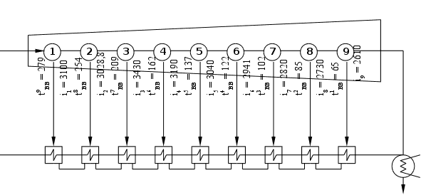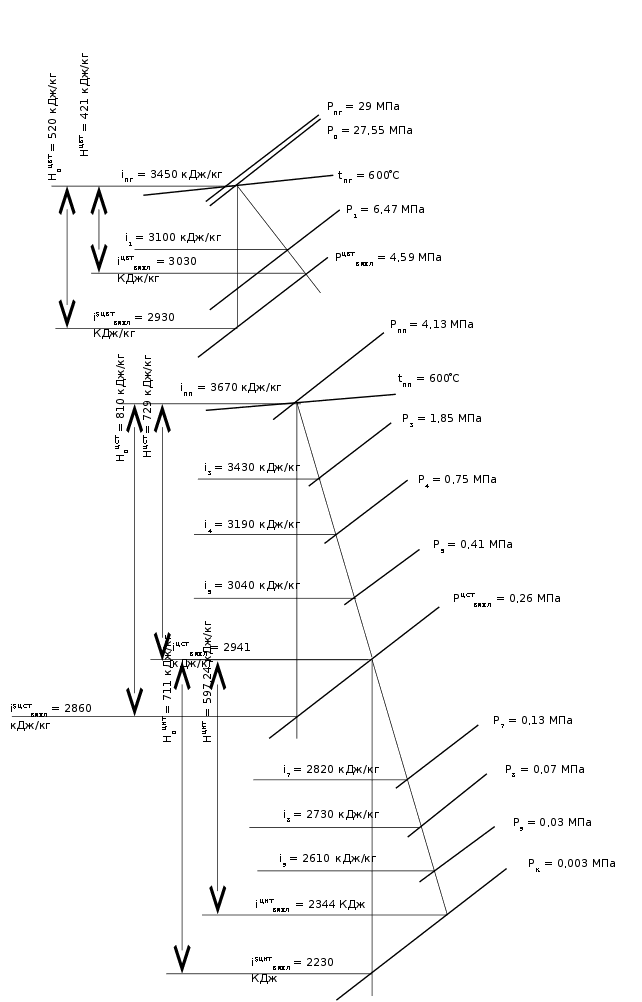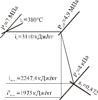 3430 кДж/кг; i4 = 3190 кДж/кг; i5 = 3040 кДж/кг; i6 = 2941 кДж/кг. i7 = 2820 кДж/кг; i8 = 2730 кДж/кг; i9 = 2610 кДж/кг.
