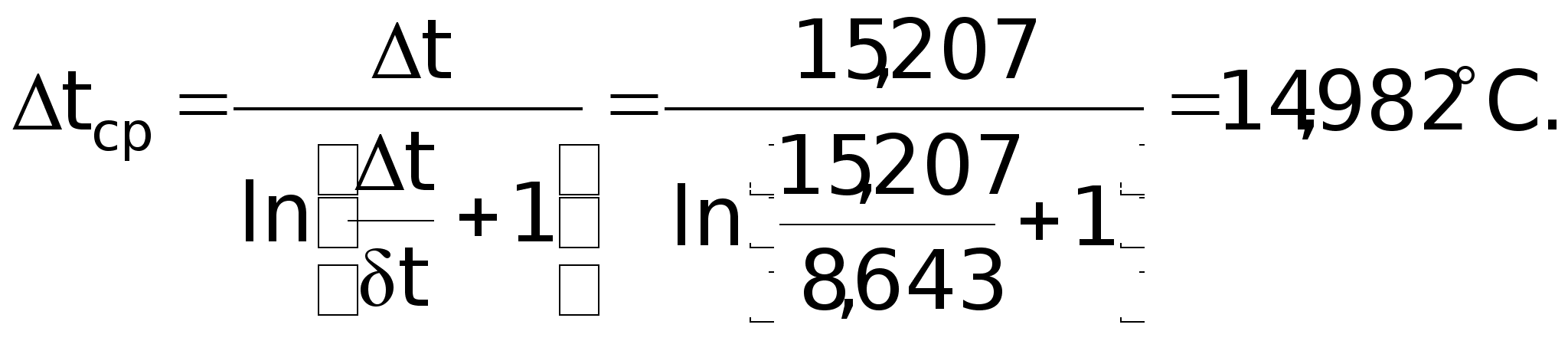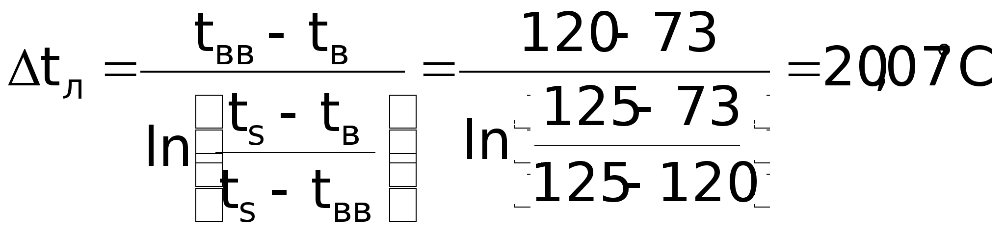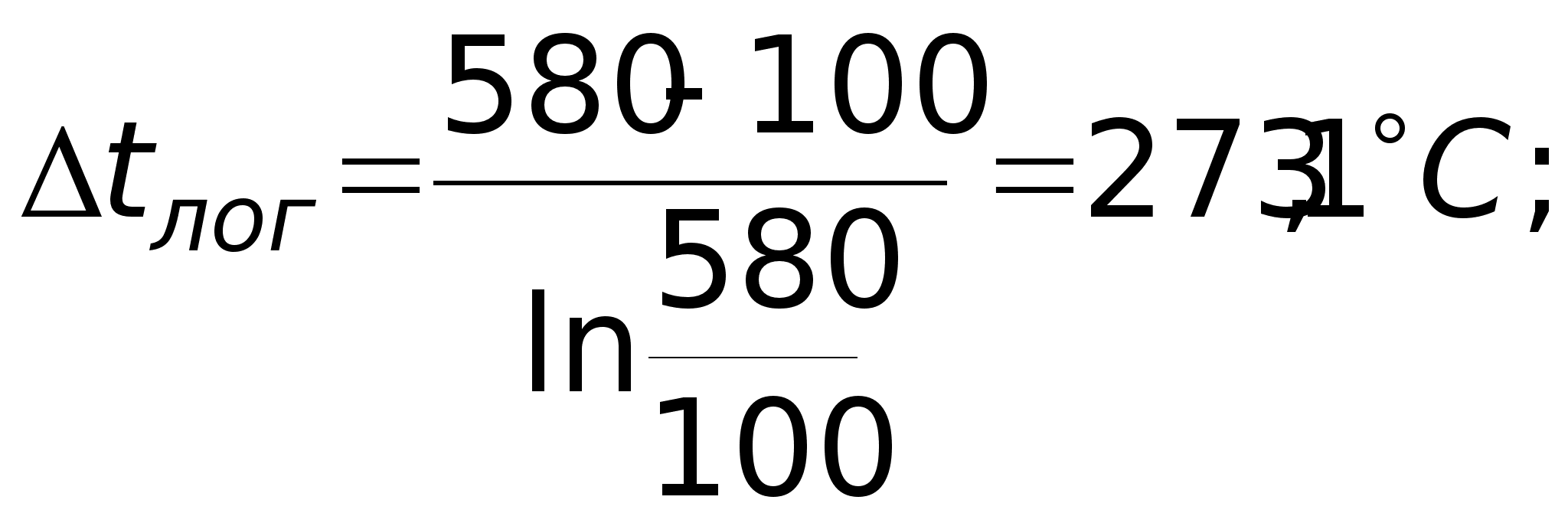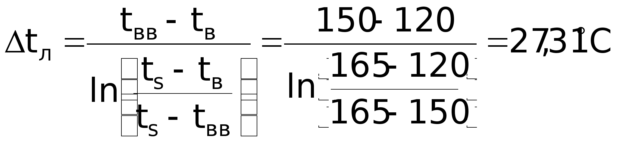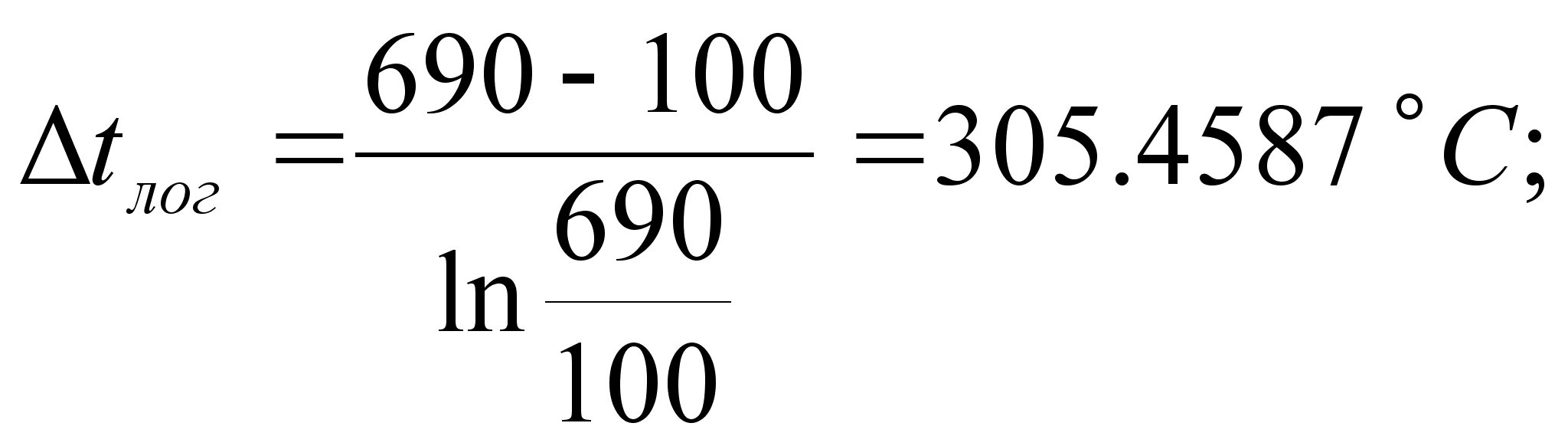 Теплоємність повітря: Срп = 1,03 кДж/кг; Потік тепла від газу до повітря: Q = Cpпmпtп = 1,030,215(300 – 20) = 62 кВт; Середня логарифмічна різниця температур: