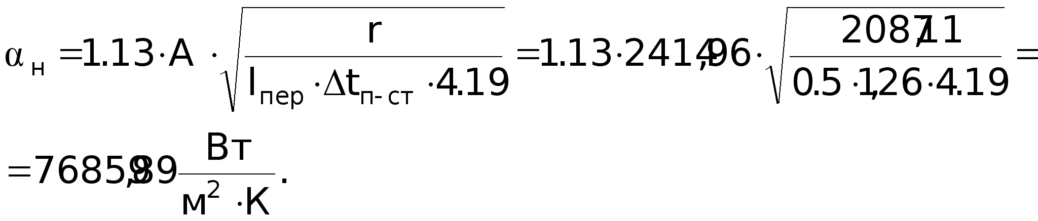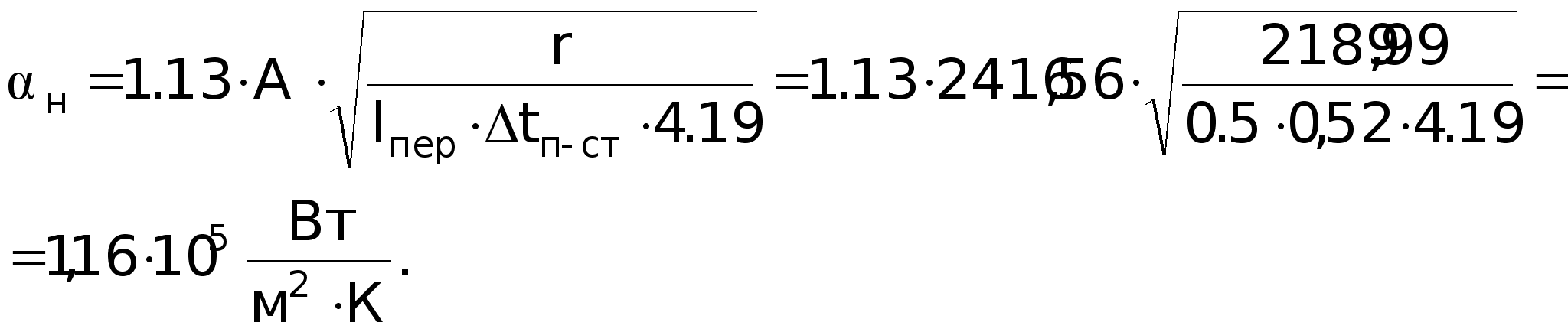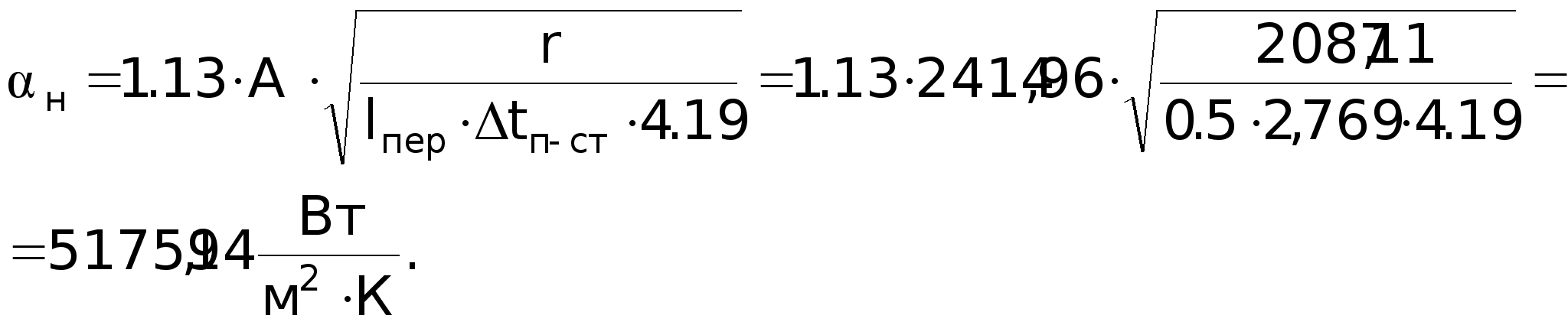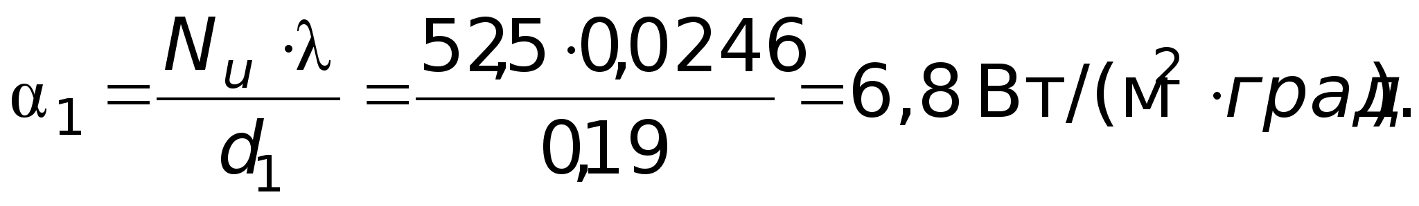 GrPr = 0,7127,5106 = 89,25106; (GrPr) 109; Nu = 0,5(GrPr)0,25(Pr /Prст)0,25 = 0,5(89,25106)0,25(0,7 /1,05)0,25 = 52,5.