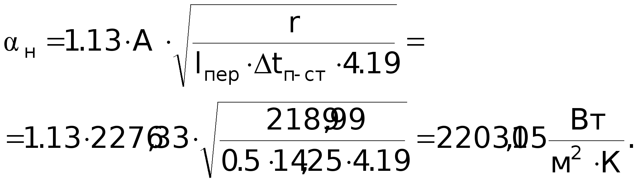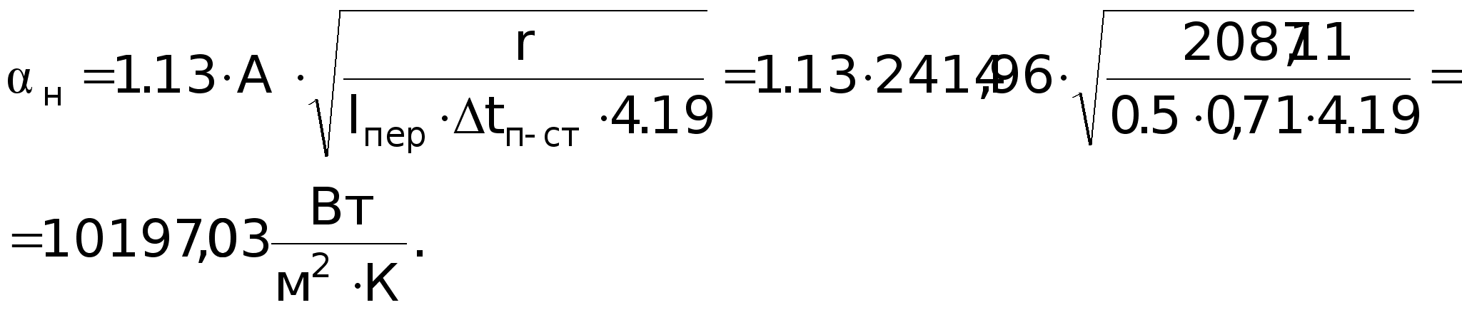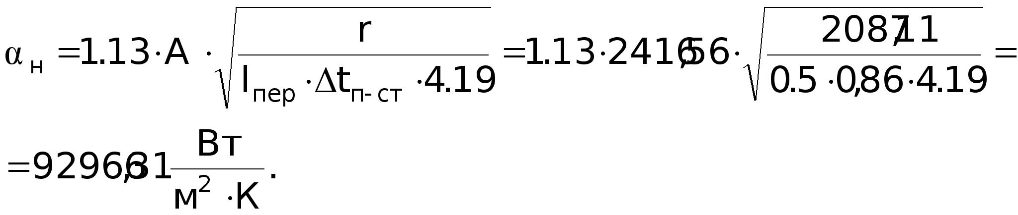 GrPr = 0,7127,5106 = 89,25106; (GrPr) 109; Nu = 0,5(GrPr)0,25(Pr /Prст)0,25 = 0,5(89,25106)0,25(0,7 /1,05)0,25 = 52,5.
