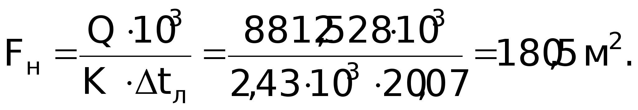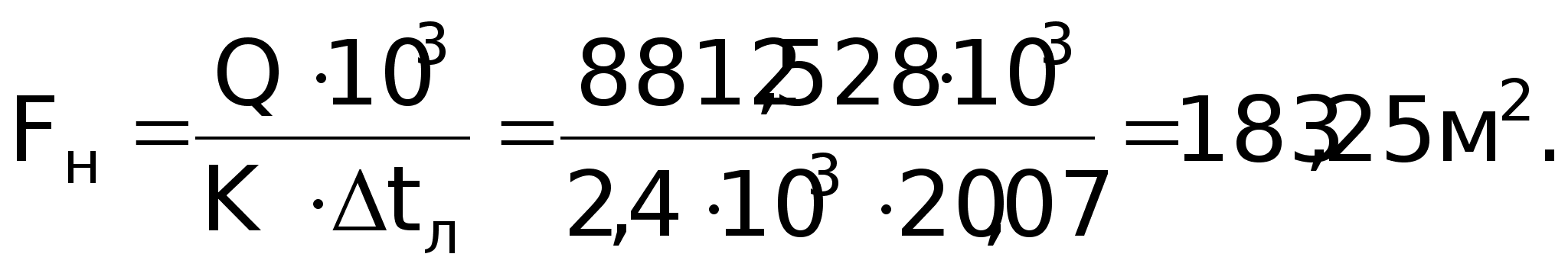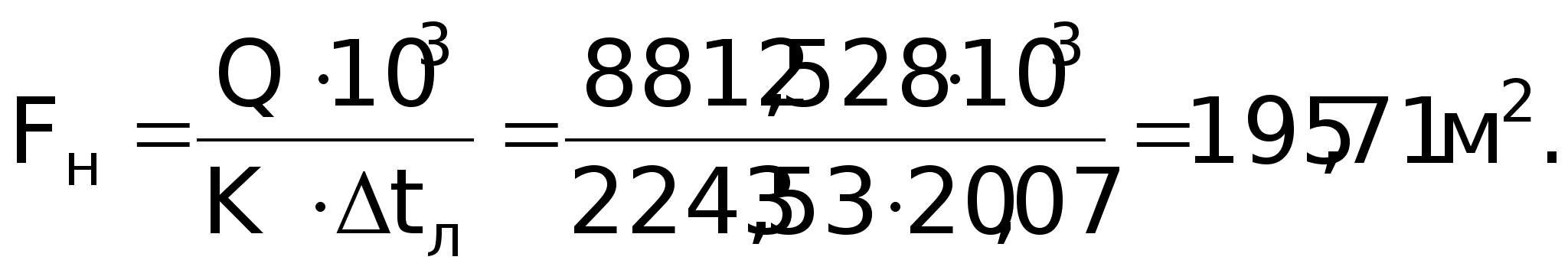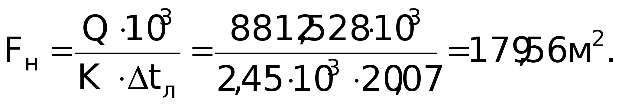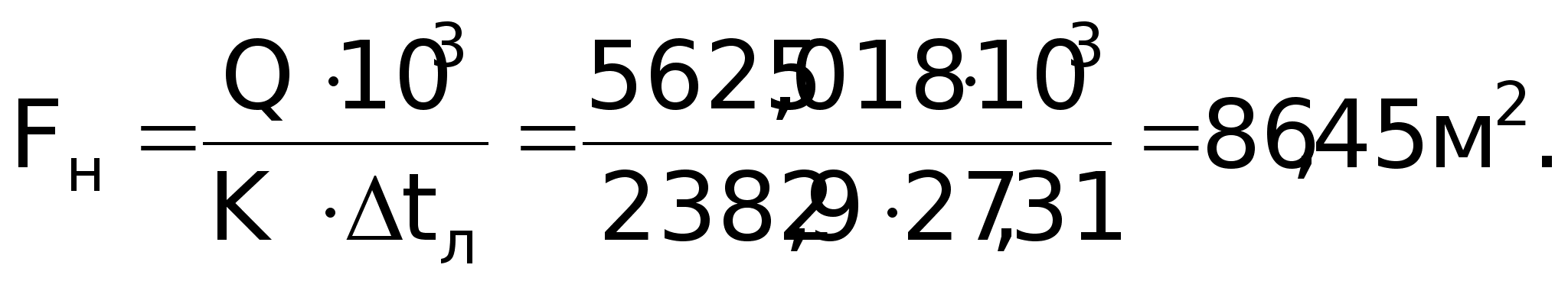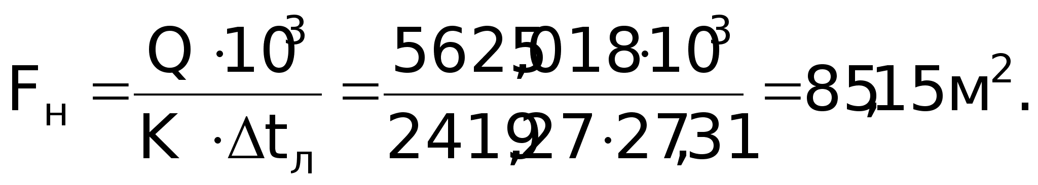Розв’язок: Поверхня нагріву, м2: