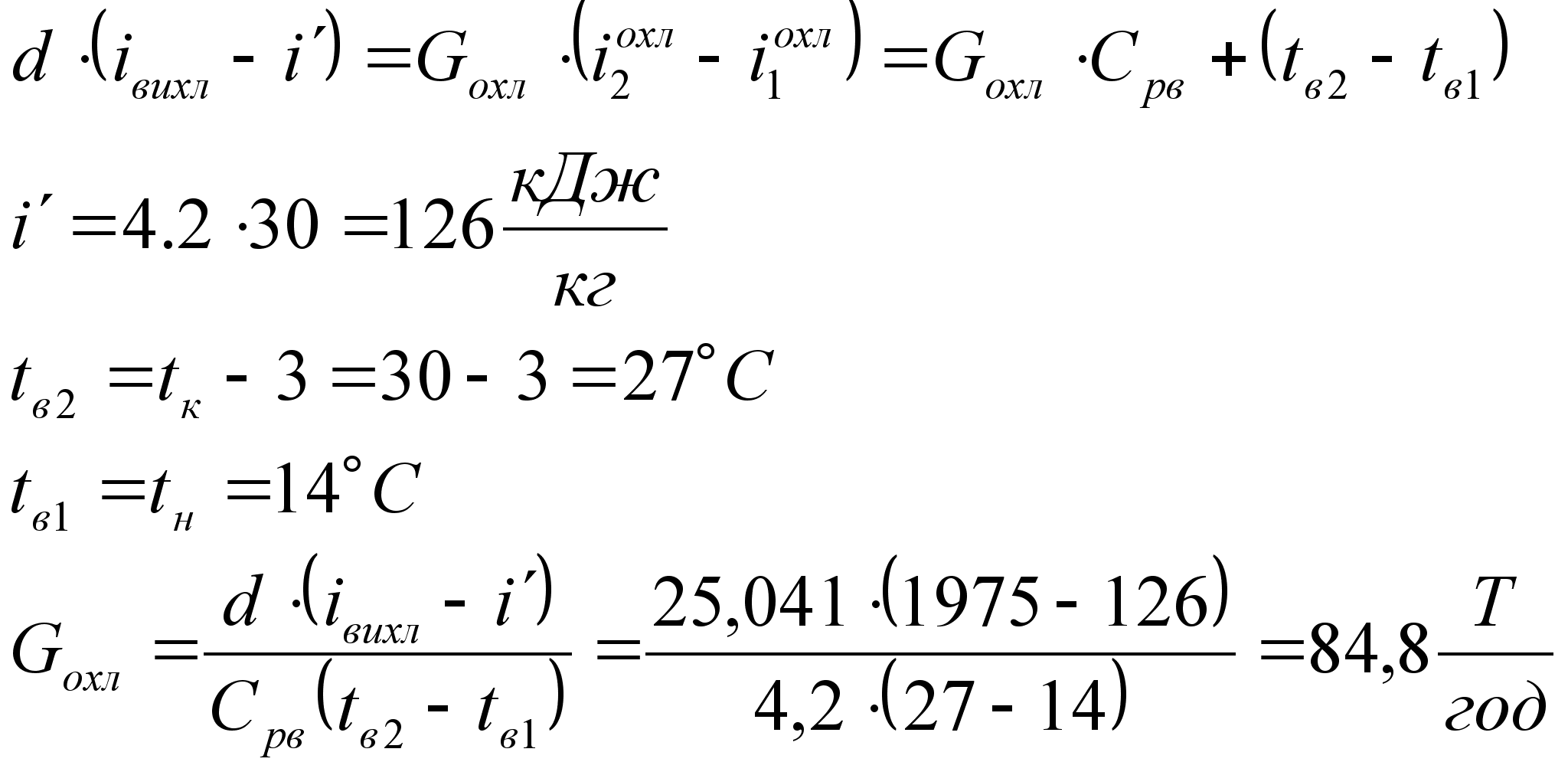 Витрату охолоджуючої води знайдемо з рівняння теплового балансу конденсатора: